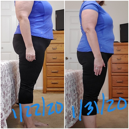 There’s not too much difference in just 9 days. Maybe a little if you look at the top roll on my stomach.